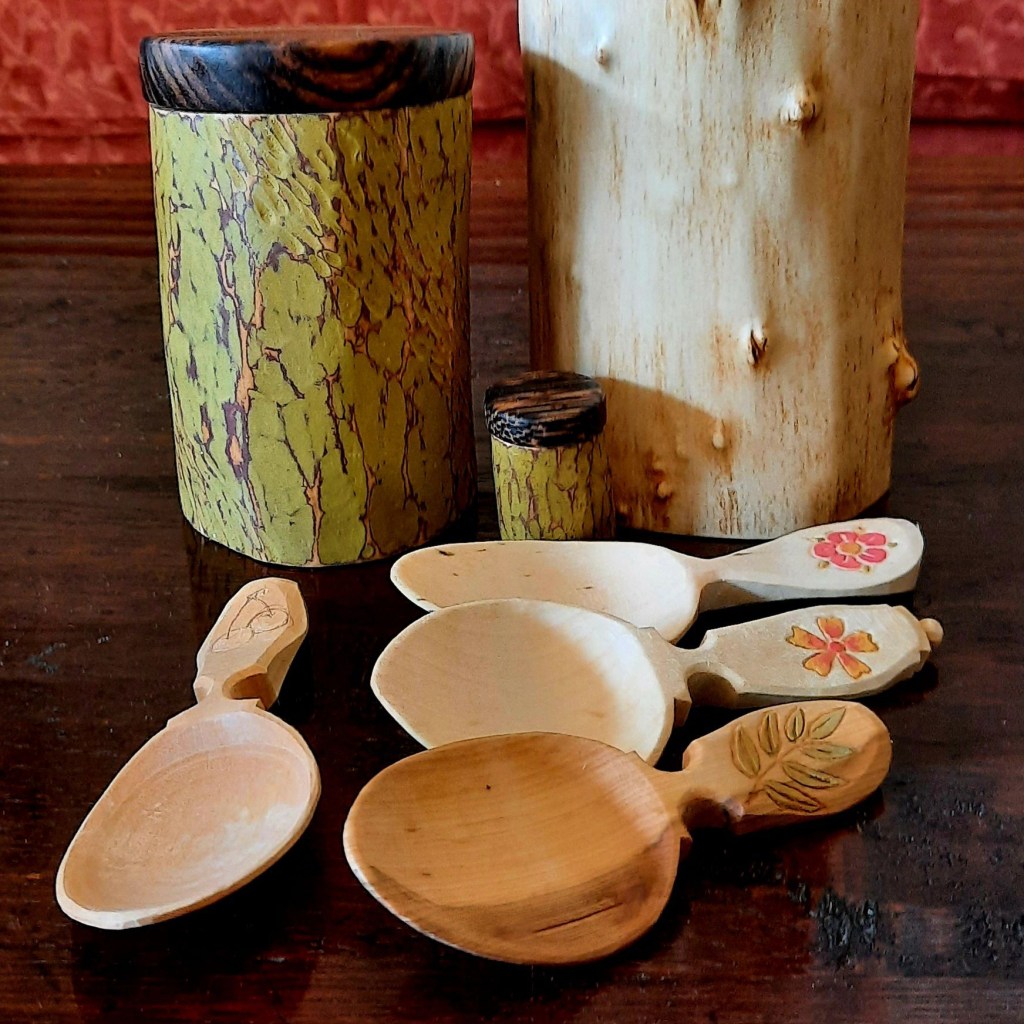 This hobby soon became my passion and has helped me to keep active. I use the traditional methods of axe and knife for hand carving spoons, scoops and shrink pots, using sustainably sourced greenwood.