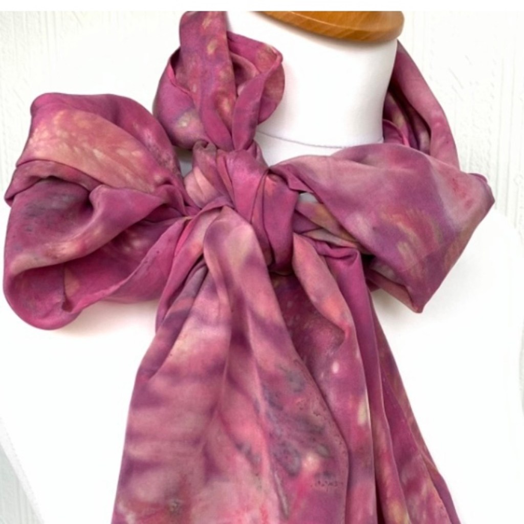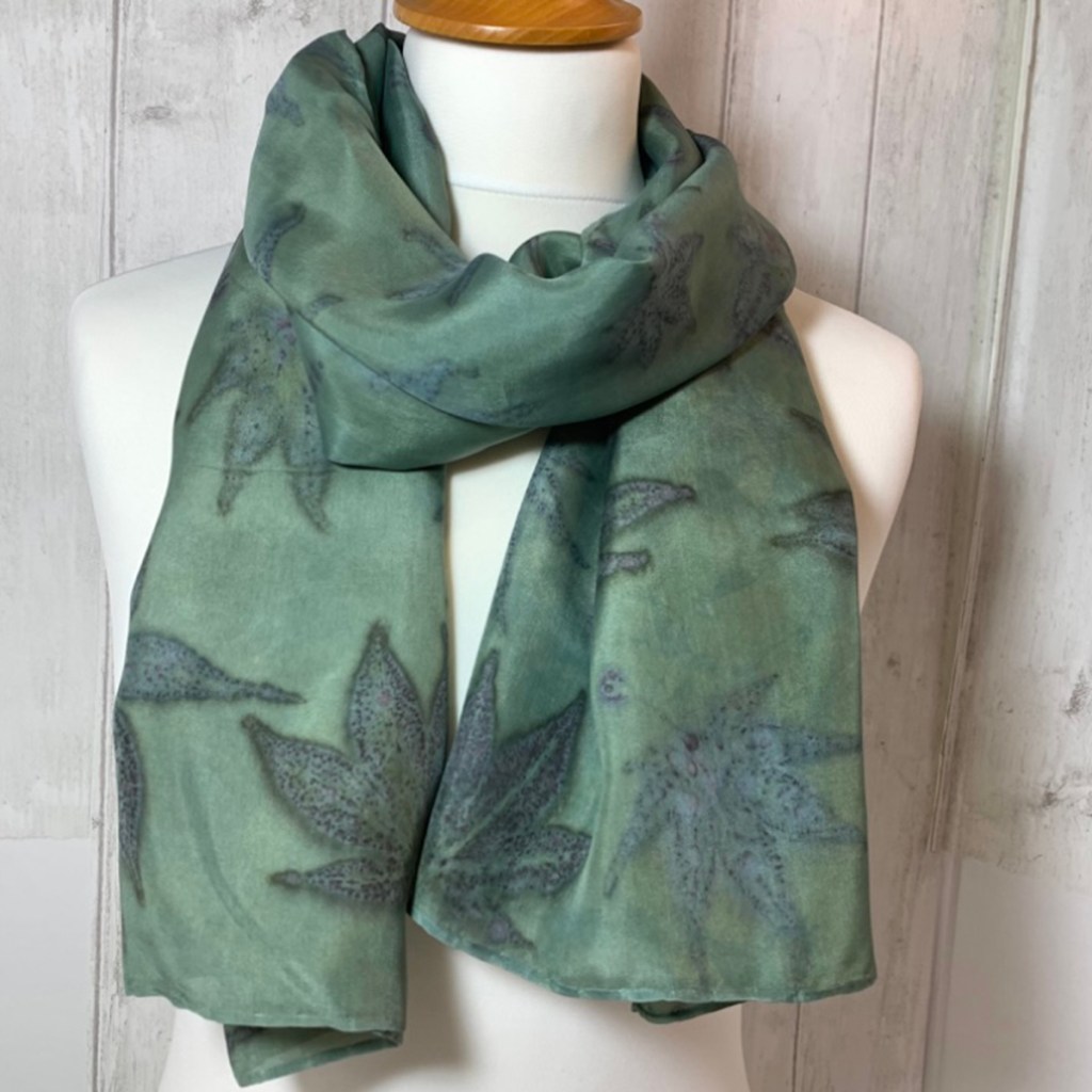 I now utilise the alchemy of chemicals and tannins in leaves, which when heated, transfer their shapes and colours to fabric. I love the serendipitous nature of this botanical printing technique and when coupled with the subtle colours of natural dyes creates a unique range of substrates for stitch, silk scarves, covered books, table runners and cushions. I also embellish my work with slow stitching with naturally dyed threads.