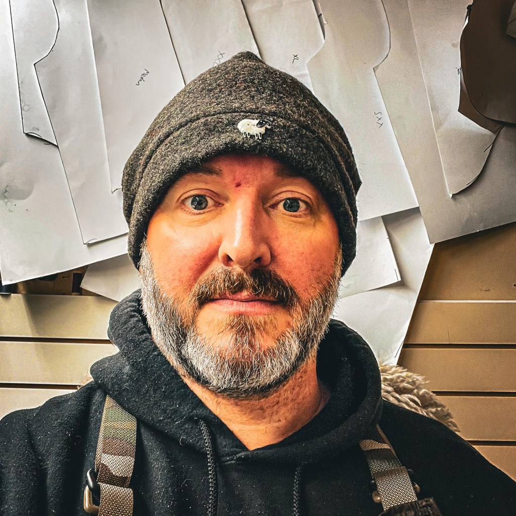 I design, cut, pattern, sew and despatch every item in the shop. Im very lucky to have my Dad make my buck saws just down the road from my workshop and market stall, keeping it in the family and keeping it local means less road miles and higher quality control.