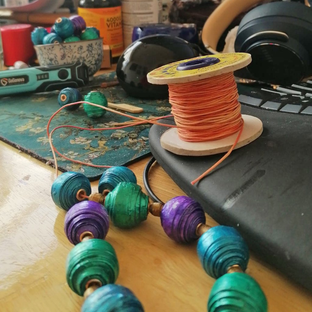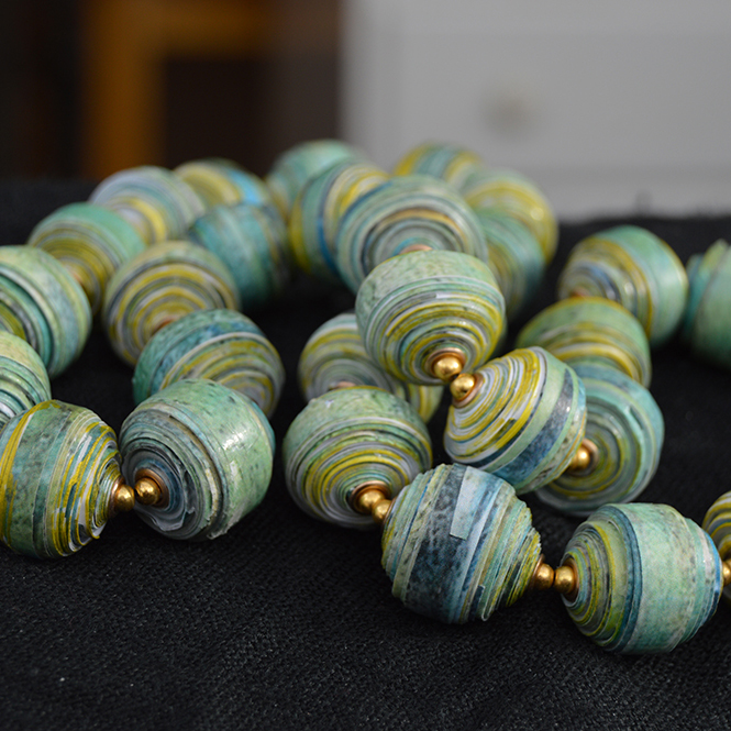 I love the action of rolling a flat image into a three dimensional bead, and the surprising patterns that are created in the process.