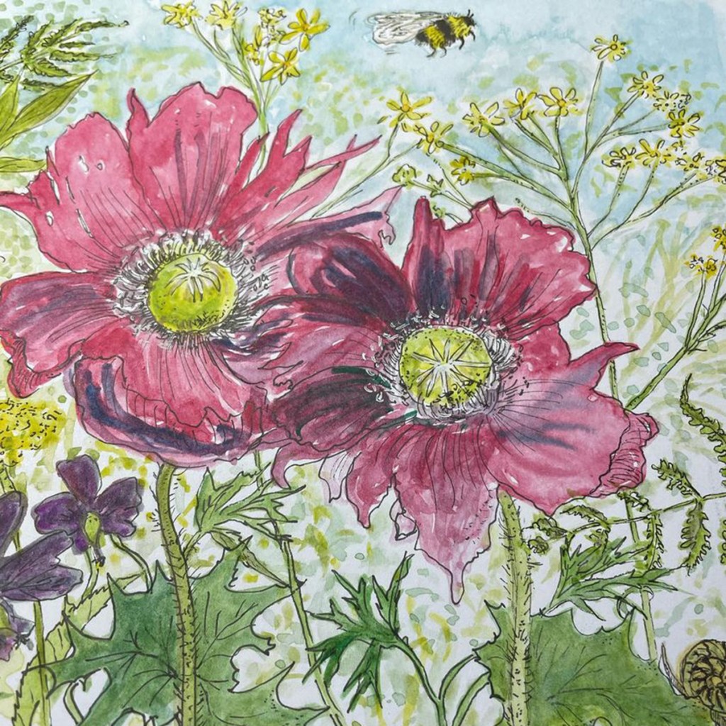 My hand painted scarves & paintings are often inspired by the seasonal flowers in my garden & the hedgerows of the countryside in Sutton.
