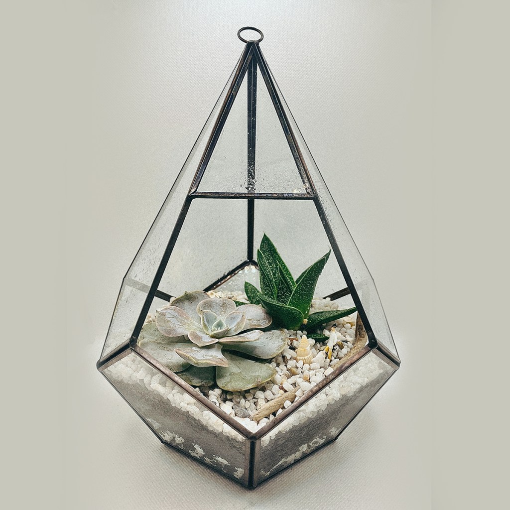 I create bespoke handmade living ecosystems with slow growing beautiful plants. These creations mimic landscapes in miniature form. I create open terrariums that utilise succulents and cacti and closed terrariums that encase tropical plants.