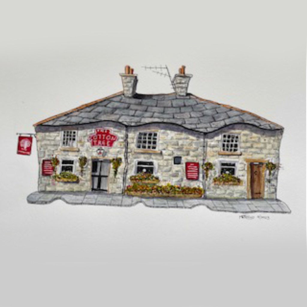 I’m a self taught artist living in a little old town in Macclesfield nicknamed Bolly (Bollington). My style is to illustrate buildings in a fun and wonky way.